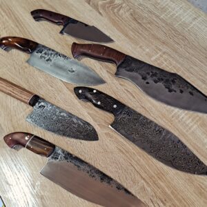 Desde Chihuahua, Mexico, Ingeniero de profesion pero siempre amante de las herramientas y la fabricacion, mantenimiento y modificación de las mismas, buscando entre diferentes actividades encontró la cuchillería por un video del famoso Chef Anthony Burdain visitaba el legendario cuchillero Bob Kramer, me voló la cabeza todo el proceso y toda el proceso de fabricación de cuchillos que fue tan fuerte el llamado que ese mismo día fui a buscar herramientas y materiales para fabricar mi primer cuchillo, obsesionado con cada paso en la fabricación logre realizar mi primer pieza en ese 2018 y no me pude detener hasta la fecha