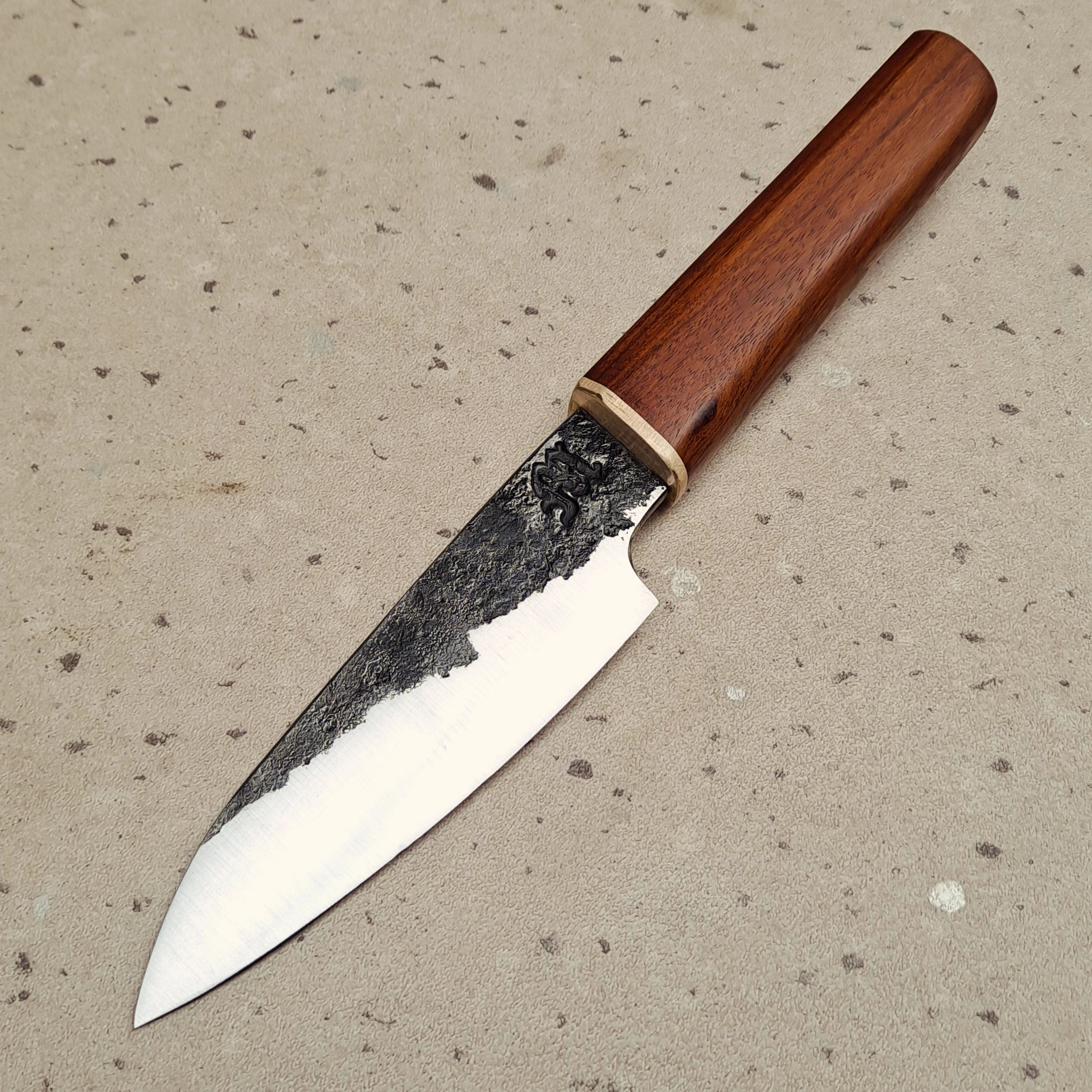 ¡Este pequeño cuchillo es una parte importante de la cocina! Este cuchillo es adecuado para verduras, frutas y hierbas, pero también se puede utilizar para carne y pescado. Gracias al acero 1095 forjado de esta hoja ofrece una dureza y resistencia perfectas para tu cocina. Con la hoja de 12 cm podrás cortar fácilmente verduras, frutas y hierbas y, gracias al lomo fino, también podrás filetearlas. Gracias al mango ajustado a mano, podrás controlar el cuchillo sin esfuerzo. En definitiva, un cuchillo para cada cocinero y para cada tipo de uso. Ya sea en casa o en un restaurante. ¡Pero esta hoja es especialmente ideal para trabajos de corte más pequeños!