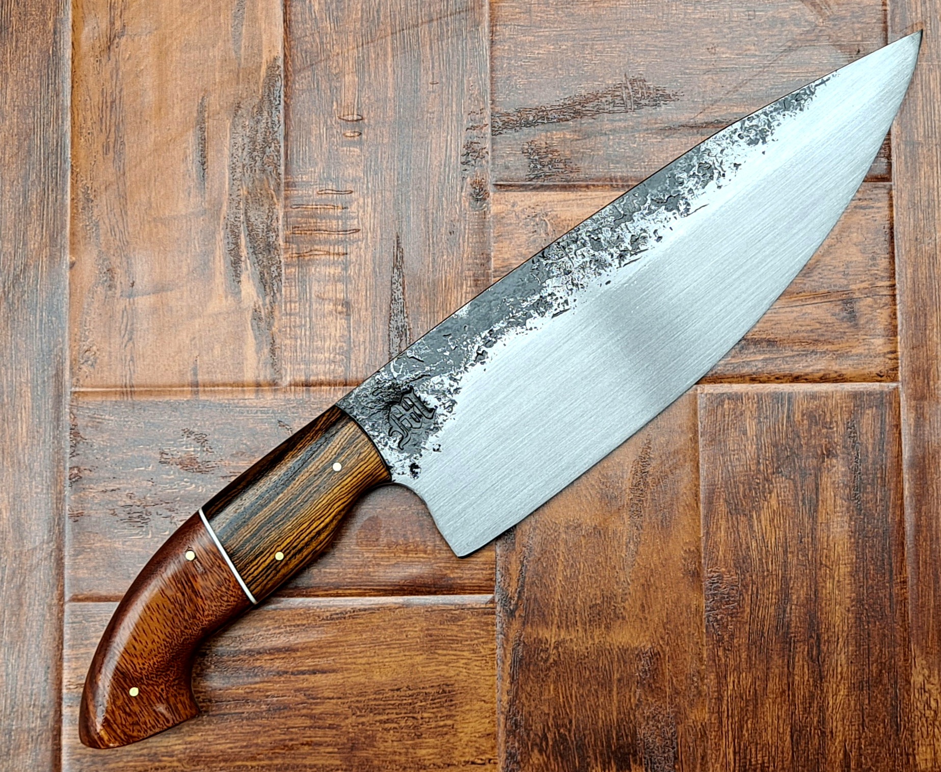 Envio precio fijoCuchillo forjado artesanal de acero 52100, muy resistente y fácil de afilar, mango integral con madera de la mas alta calidad estabilizada. Incluye funda de piel.