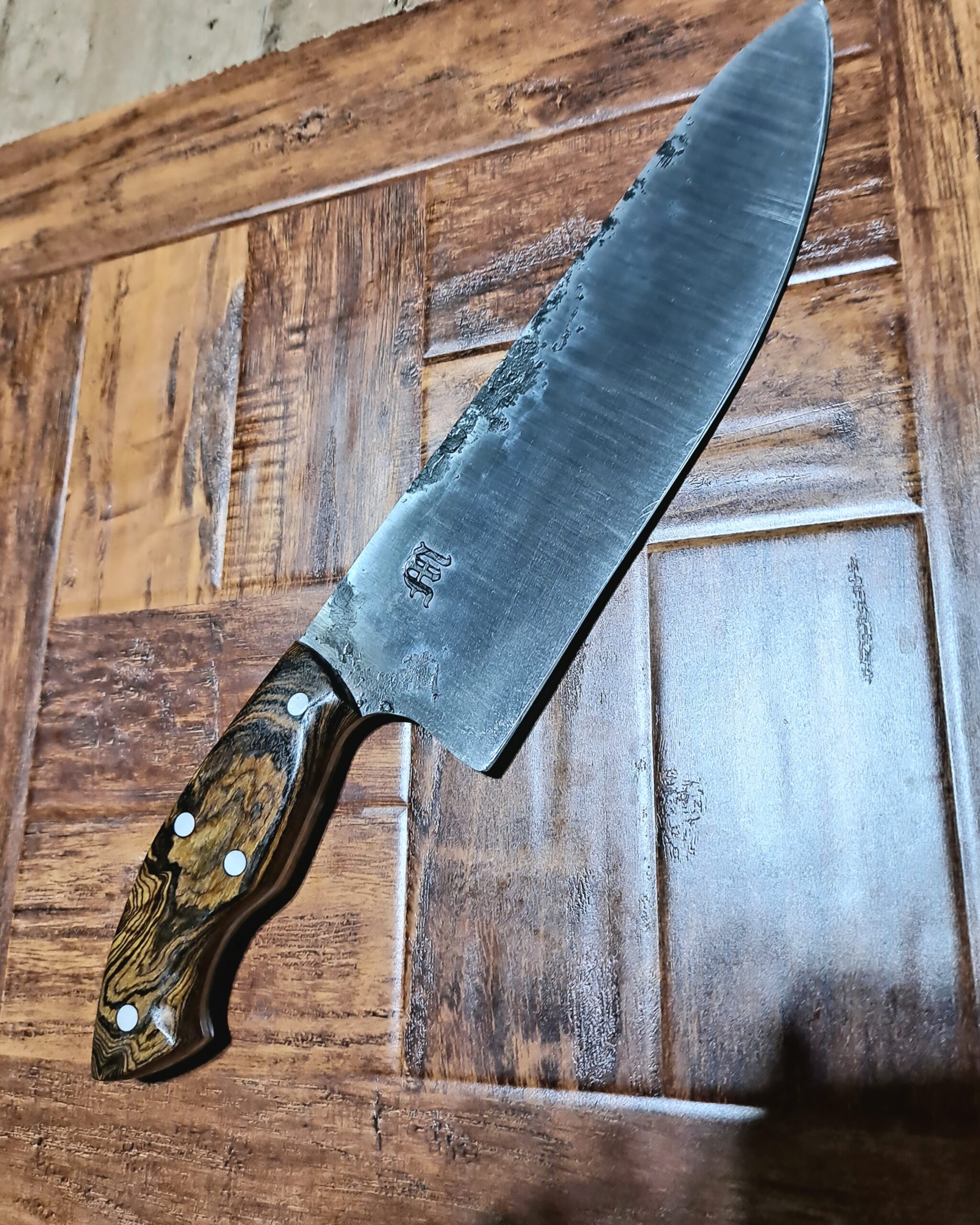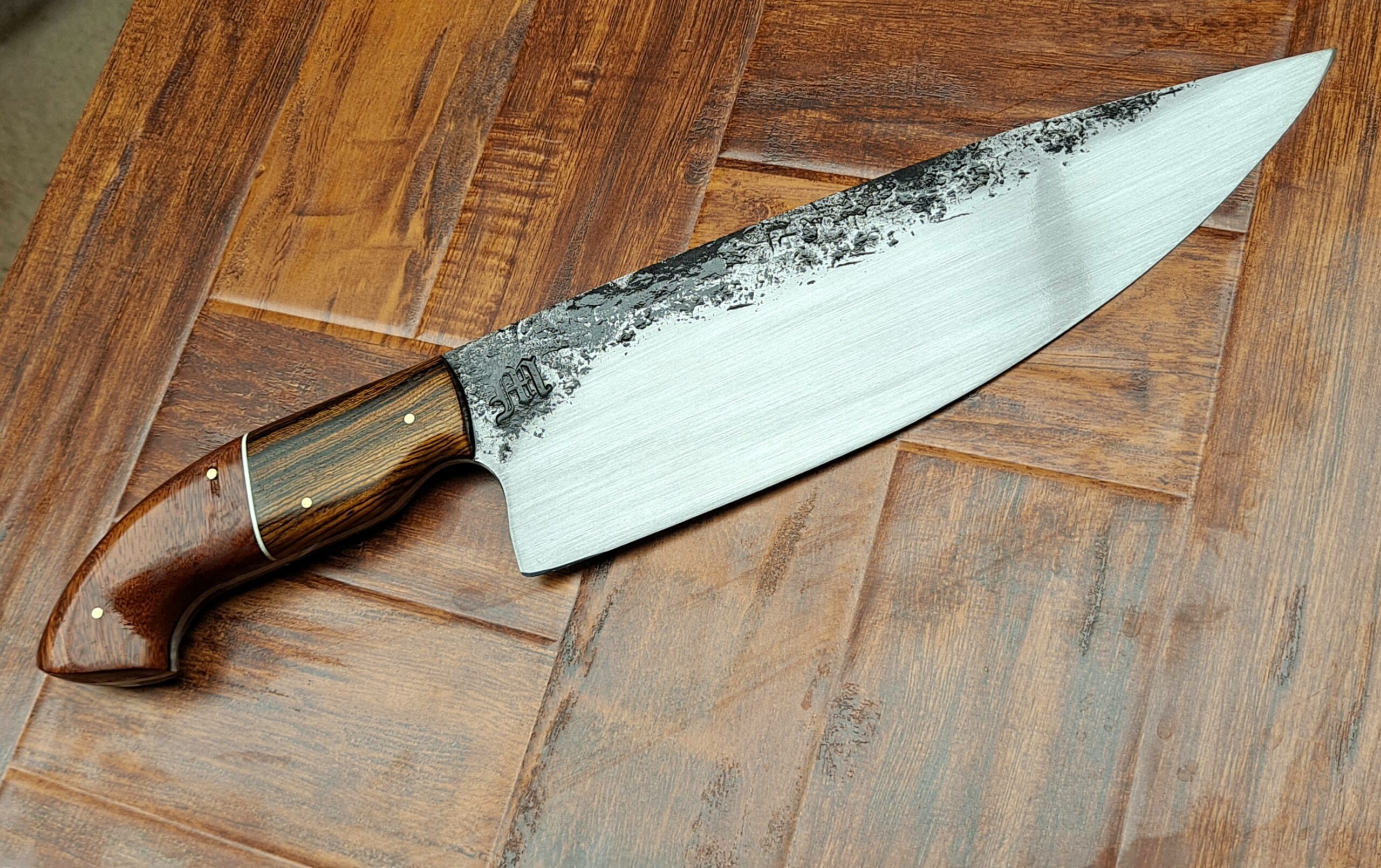 ¡Este cuchillo no debe faltar en ninguna cocina! Ya sea en un restaurante, en un restaurante de cuatro estrellas o en la cocina de casa. Este cuchillo cambia tus opciones para cortar carne, pescado o verduras. Gracias al acero 52100 que forjé a mano, esta hoja ofrece una dureza y tenacidad perfectas. ¡Con la hoja de 220 mm podrás cortar trozos grandes y pequeños, picar o incluso filetear gracias a la hoja fina! Gracias al mango grande, ajustable a mano, puedes controlar el cuchillo sin esfuerzo a pesar de su tamaño. En definitiva, un cuchillo para cada cocinero. Ya sea en casa o en un restaurante. ¡Un “must have” para todos los chefs!